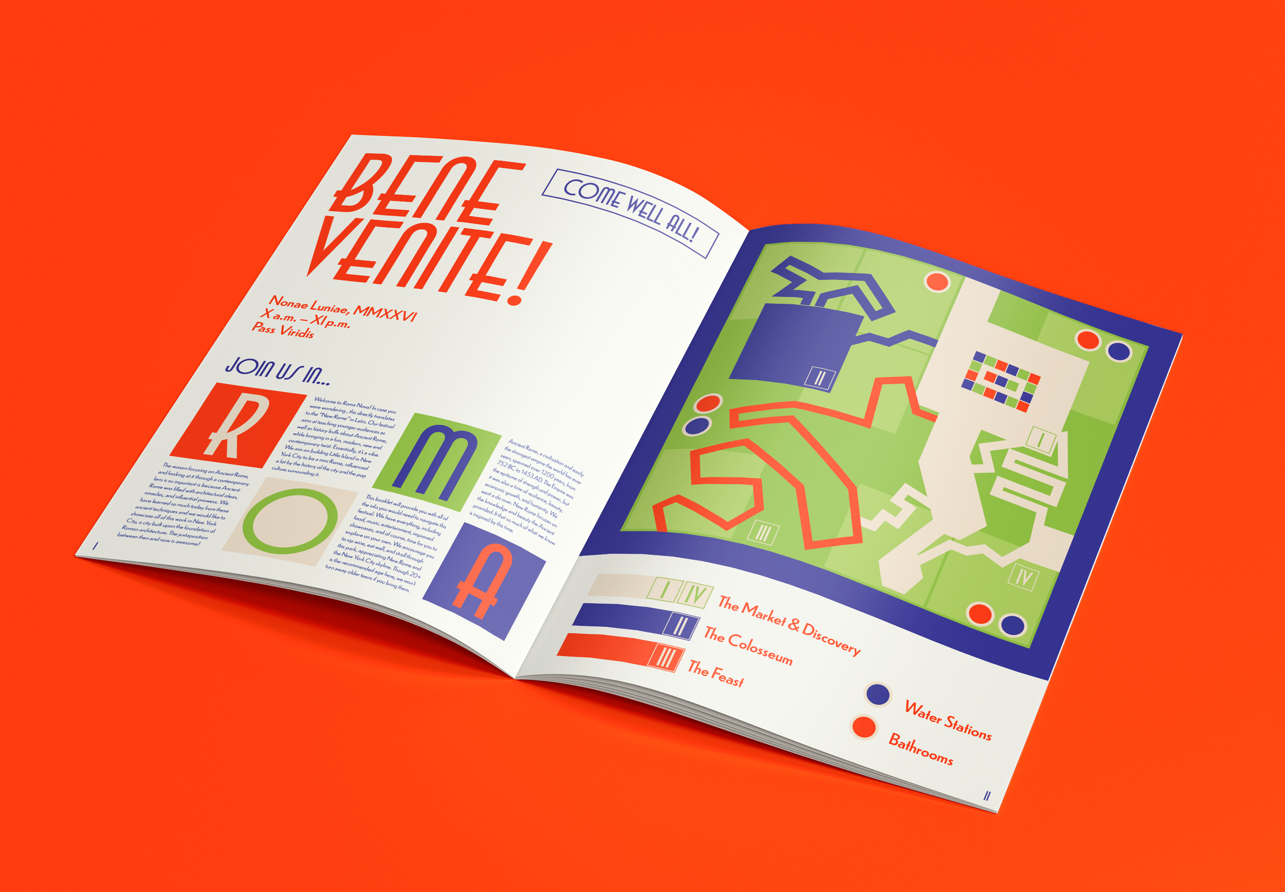Being a festival, Roma Nova needed an audience; this event’s being 20-30 year old history buffs looking for an event on a sunny day. After establishing an audience, I created a system that included banners, wayfinding, tickets, posters, and a brochure.